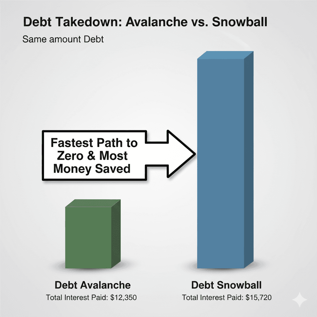 While the Snowball method has its behavioral merits, I almost always recommend the Debt Avalanche method to my clients.